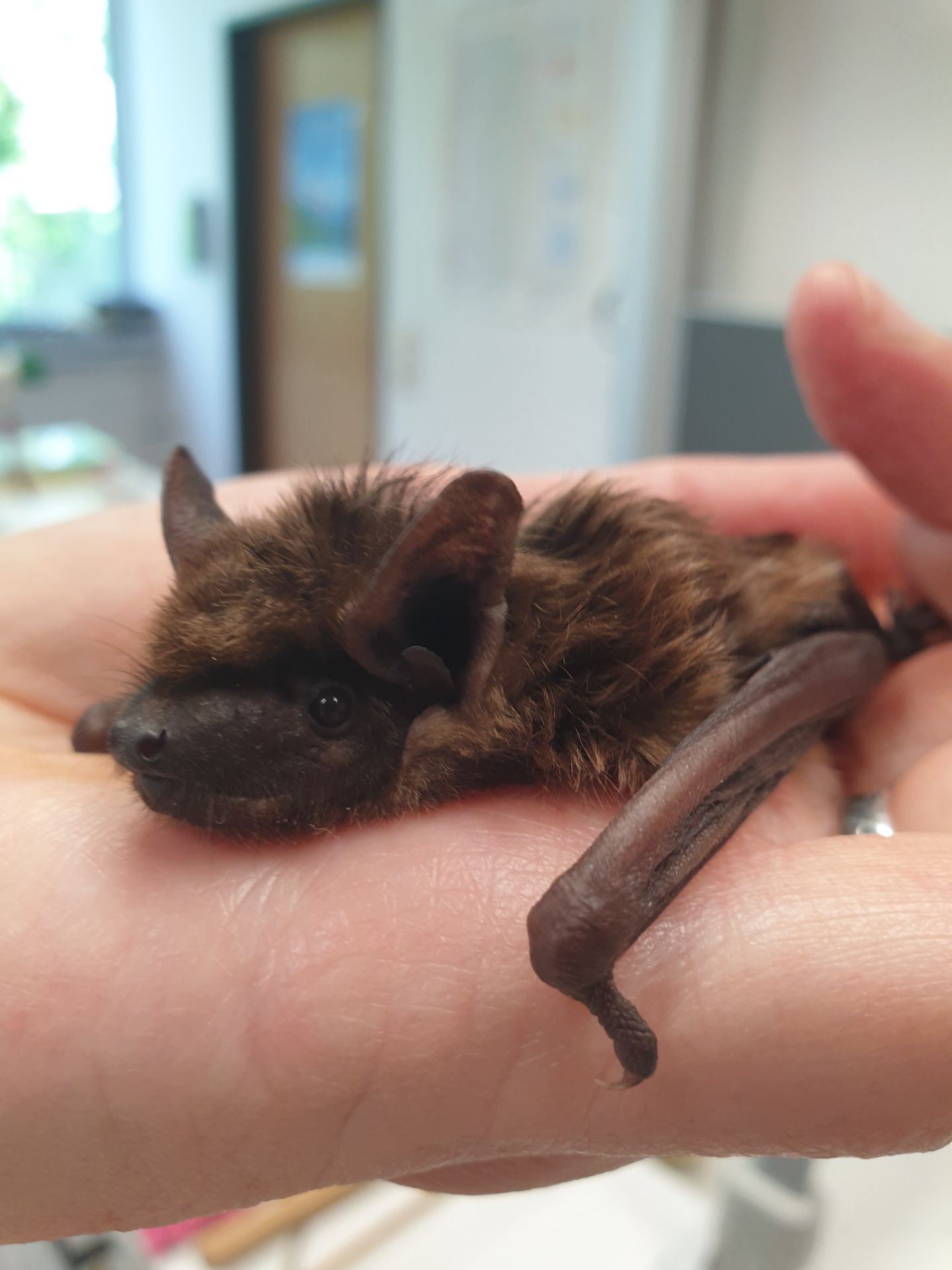Sie kam mit neun ihrer Fledermäuse zu uns, die alle einzeln in einer Kiste mit Luftlöchern und einem Tuch vorsichtig transportiert wurden. Bevor wir in den Chemiesaal hineingelassen wurden, mussten wir der Fledermausfrau versprechen, dass wir sehr leise sein würden. Nachdem wir uns alle hingesetzt hatten, ging die Fledermausfrau mit den Fledermäusen durch den Raum. Wir durften eines der Tiere streicheln und zwei andere wurden uns von ihr an unser Ohr gehalten.